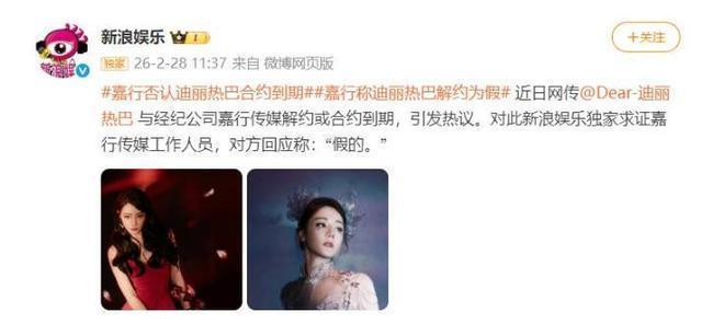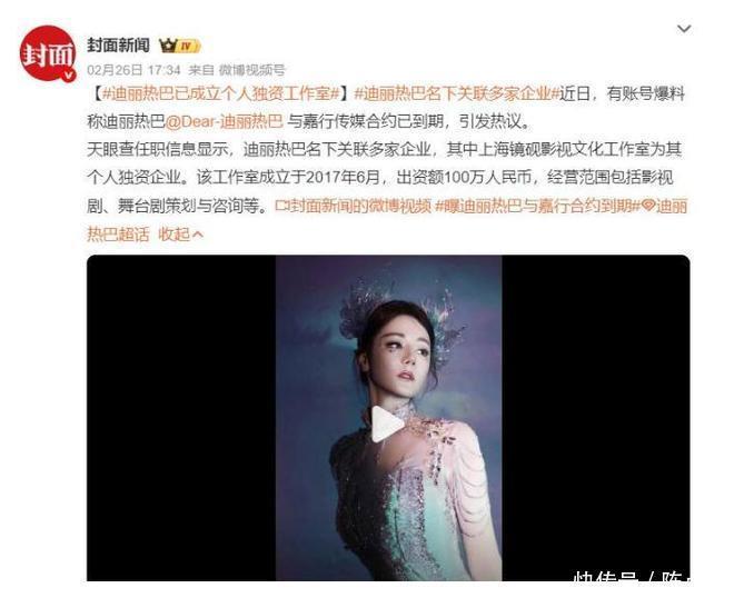 在今年2月26日的时候,迪丽热巴突然被曝即将与嘉行合约到期,还专门成立了独属于个人独资工作室,大有一副要独立发展的架势。